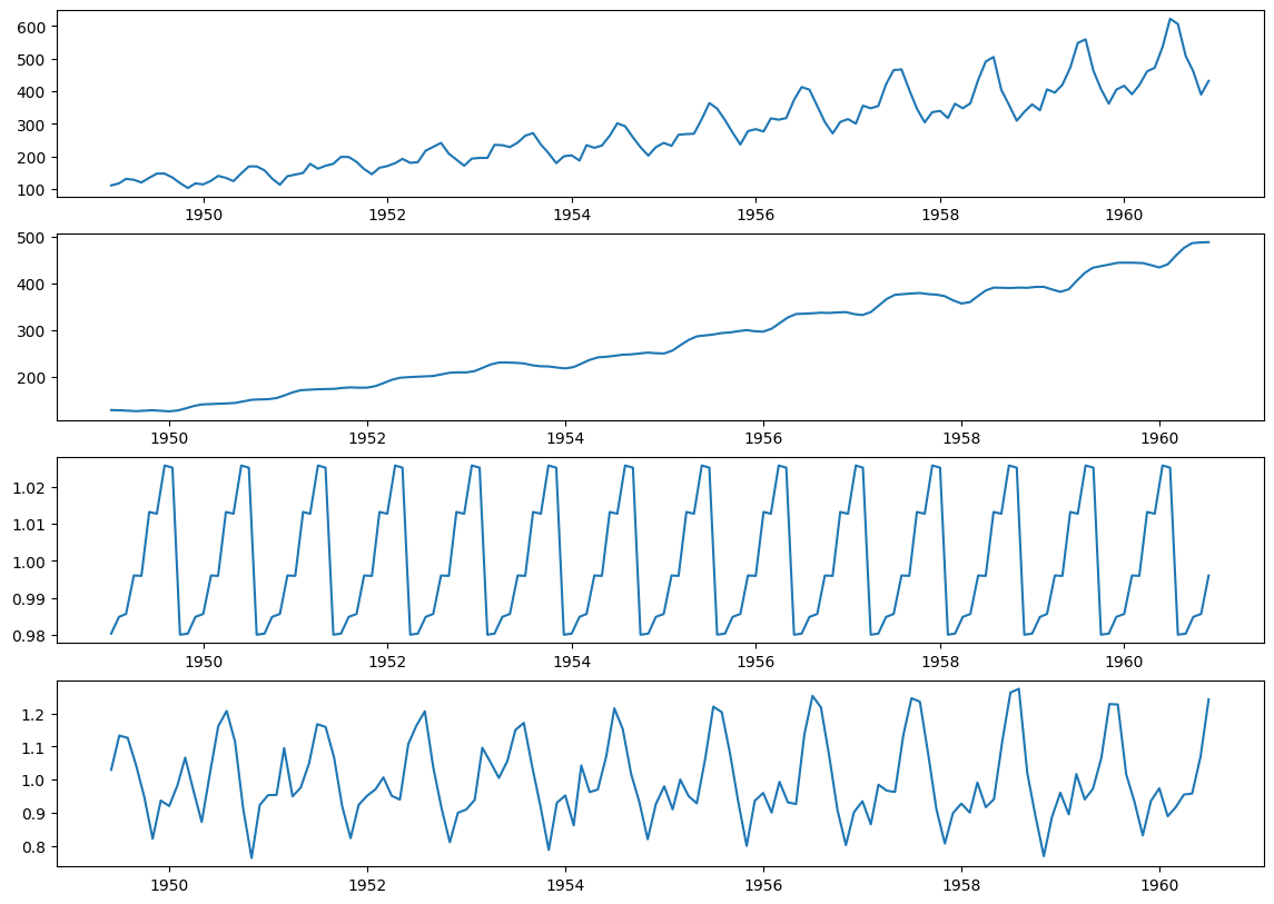 - Multiplicative $ y_t = T_t * S_t * R_t$