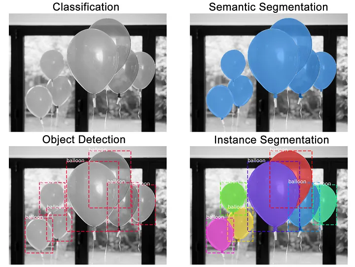 There are many computer vision tasks that have deep learning model implementations such as image classification, object detection, image segmentation, pose estimation, image generation, depth estimation, image captioning, video analysis…etc. In this document, we will go through an overview of the first three tasks to understand the requirements to solve these problems and the differences between them.
